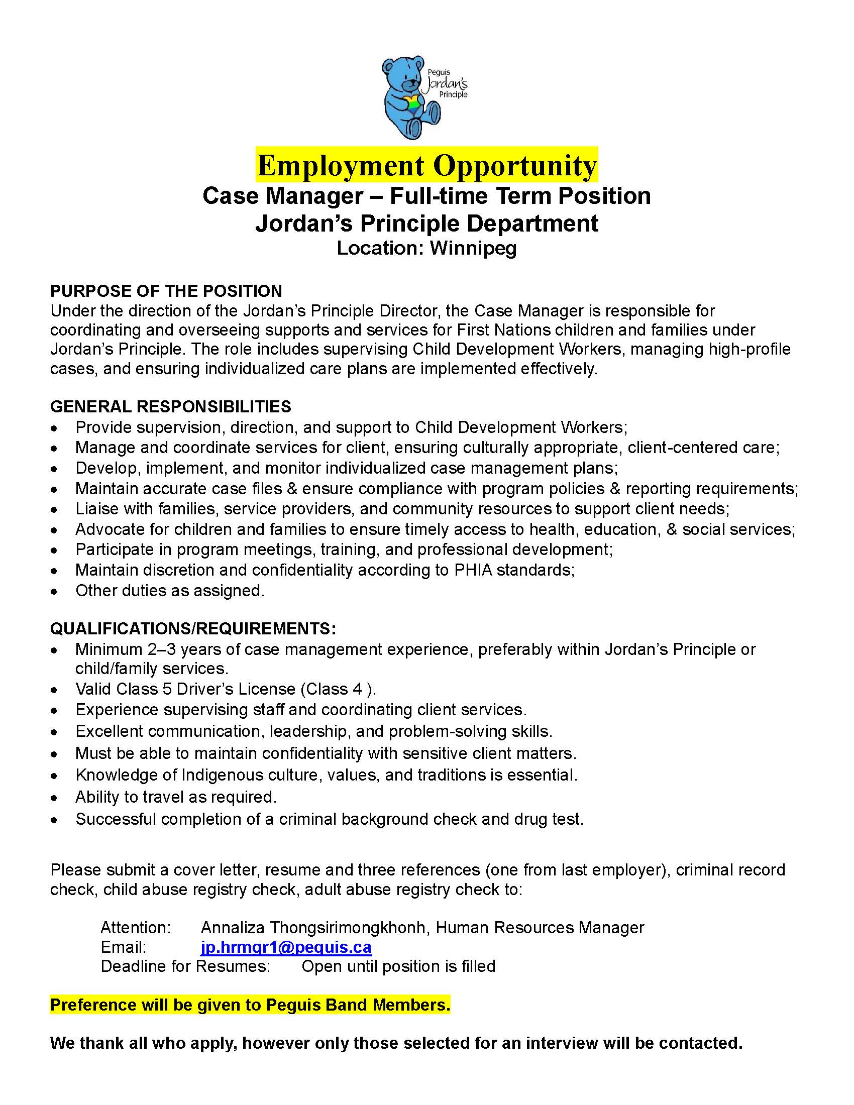 Opportunities WINTERIZATION PROJECT WORKERS Instructor Required On Call/Intake Worker (Part-time Position) Medical Navigator – Full-time Term Position Jordan’s Principle Department Location: Peguis Land Base Support Worker – Full-time Term Position Jordan’s Principle Department Location: Winnipeg Child Development Worker– Full-time Term Position Jordan’s Principle Department Location: Peguis Child Development Worker – Full-time Term Position Jordan’s Principle Department Location: Winnipeg Catering for Annual Employee Dinner on December 5th 2025 Call Out for Electoral Officer Training Receptionist (Full-time Term) Position Peguis Band Office Yard Operator (Full-time Term Position) Housing Department Haulers – 2 Positions (Part-time) Housing Department Safety Officer/Human Resources Officer (Full-time Term Position) Housing Department Administrative Assistant - Chief Peguis Investment Corp. Peguis Mall - Sidewalk Project Urban Outreach Coordinator -Term Position Licensed Practical Nurse – 3 Month Term Early years teacher required Septic Truck Driver (2-Term Positions) FINANCE DIRECTOR – PEGUIS FIRST NATION (Full-Time Term Position)