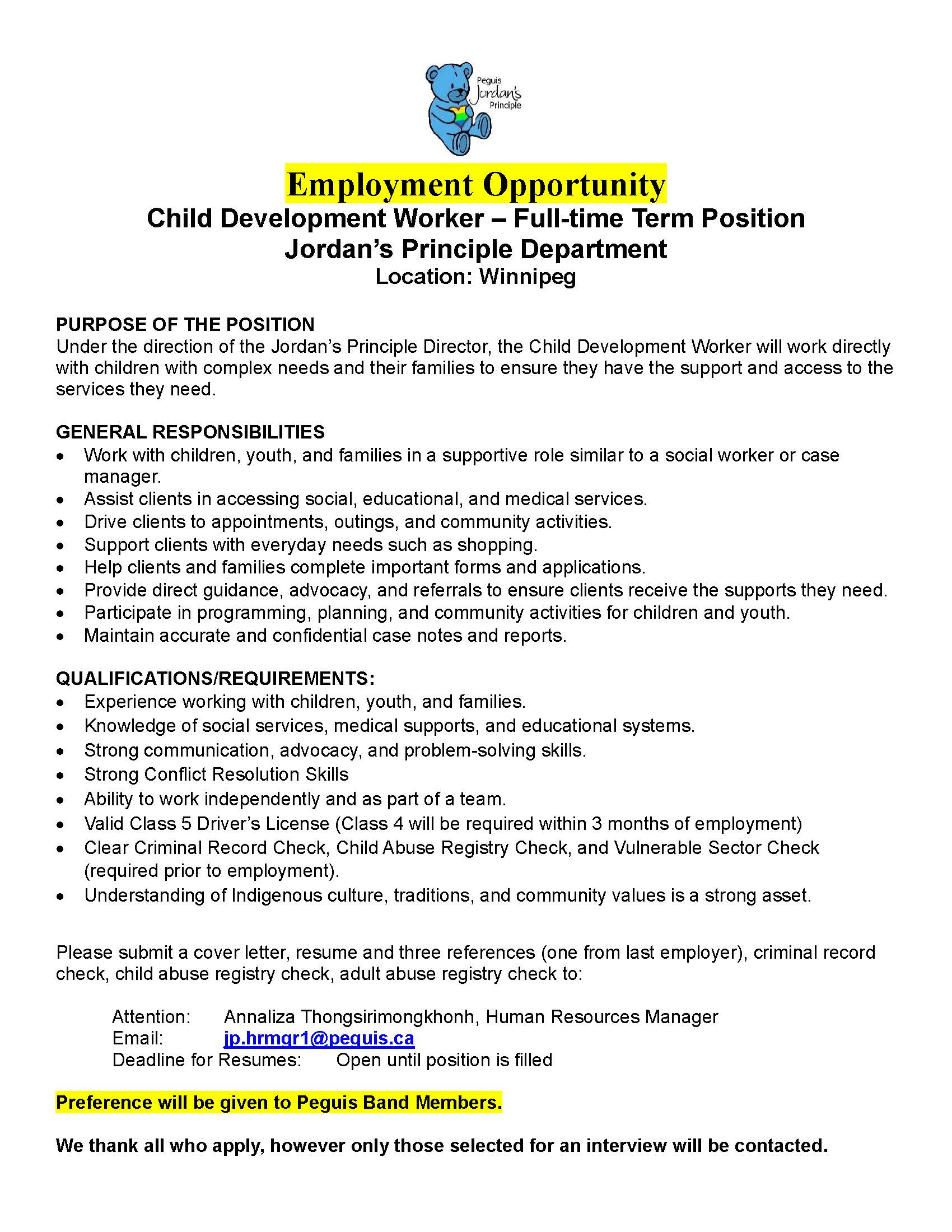 Opportunities WINTERIZATION PROJECT WORKERS Instructor Required On Call/Intake Worker (Part-time Position) Medical Navigator – Full-time Term Position Jordan’s Principle Department Location: Peguis Land Base Support Worker – Full-time Term Position Jordan’s Principle Department Location: Winnipeg Child Development Worker– Full-time Term Position Jordan’s Principle Department Location: Peguis Case Manager – Full-time Term Position Jordan’s Principle Department Location: Winnipeg Catering for Annual Employee Dinner on December 5th 2025 Call Out for Electoral Officer Training Receptionist (Full-time Term) Position Peguis Band Office Yard Operator (Full-time Term Position) Housing Department Haulers – 2 Positions (Part-time) Housing Department Safety Officer/Human Resources Officer (Full-time Term Position) Housing Department Administrative Assistant - Chief Peguis Investment Corp. Peguis Mall - Sidewalk Project Urban Outreach Coordinator -Term Position Licensed Practical Nurse – 3 Month Term Early years teacher required Septic Truck Driver (2-Term Positions) FINANCE DIRECTOR – PEGUIS FIRST NATION (Full-Time Term Position)