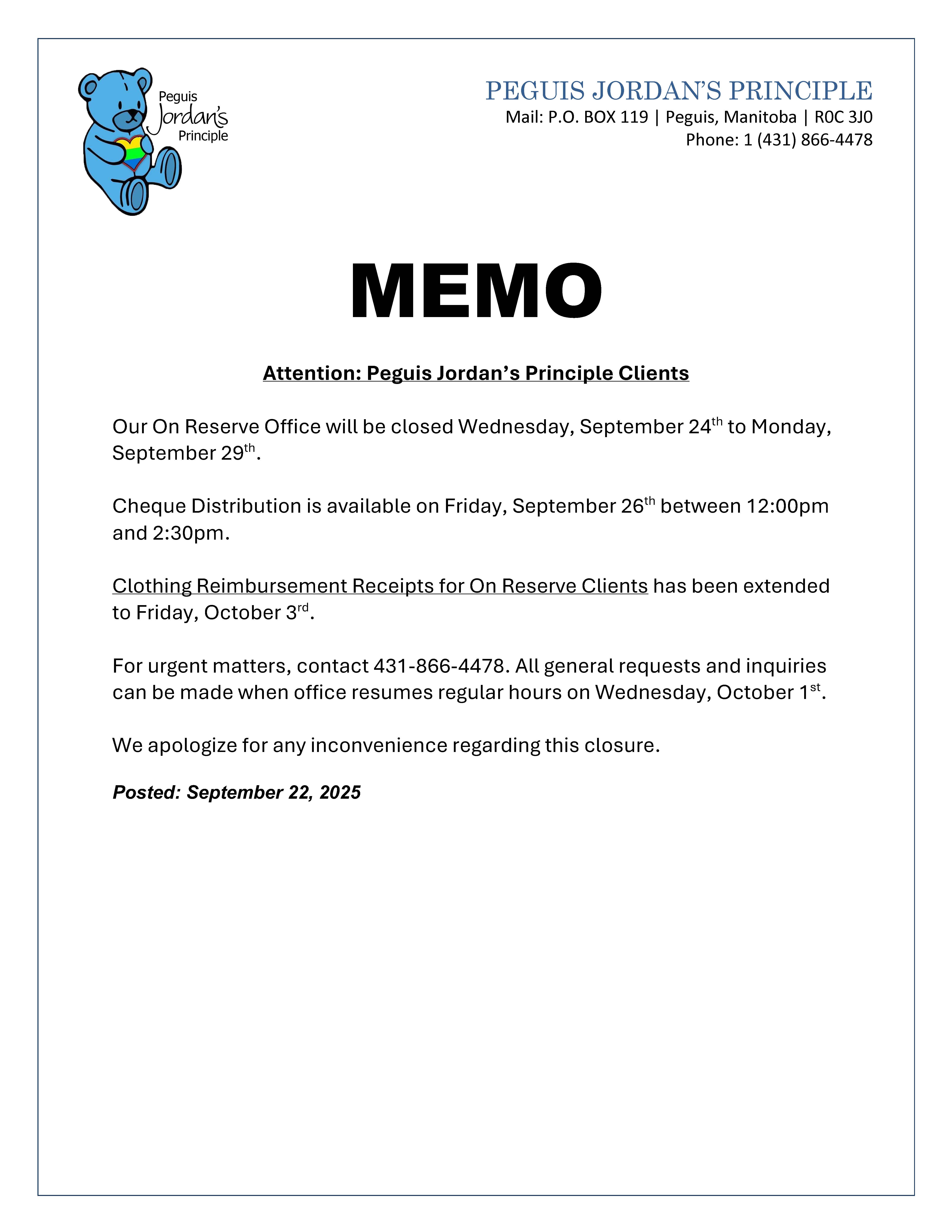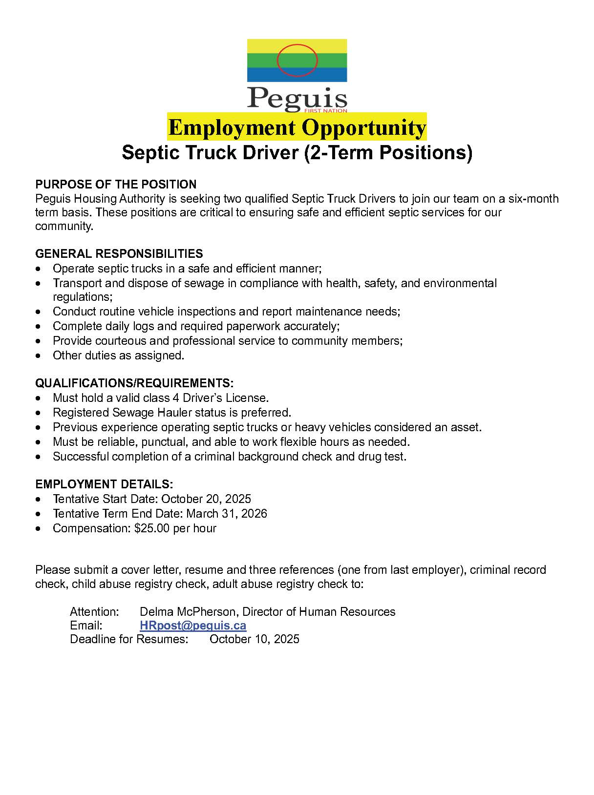 Start Date: October 2, 2025 π₯ Location: Peguis Health Centre π§Ύ Bring: Your Manitoba Health Card π Wear: A short-sleeved shirt for easy access π©ββοΈ Service: You will be seen by the Nurse on Call Protect yourself and your loved ones this flu season. Get vaccinated!