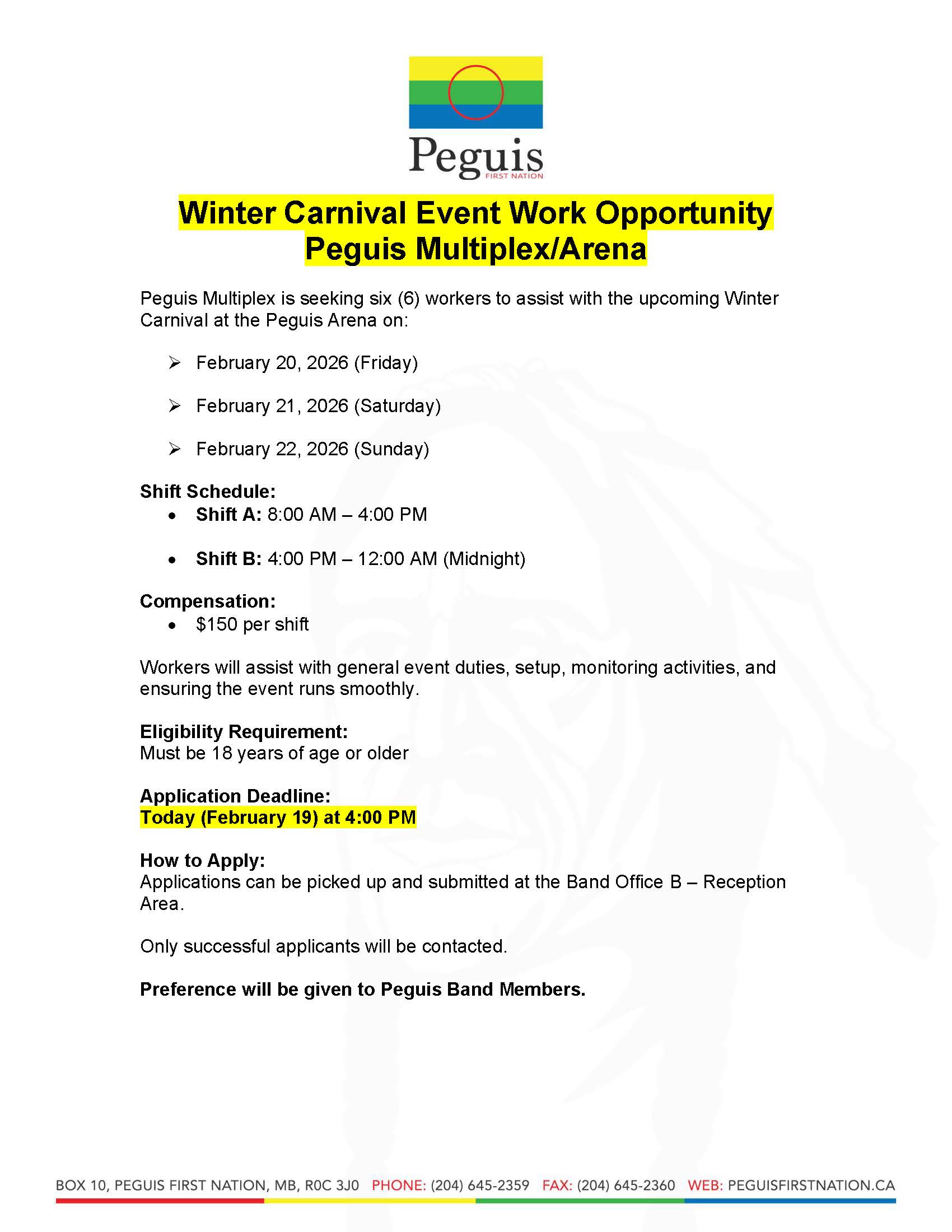 Seasonal Flu Vaccine Now Available in Peguis First Nation The FLU Vaccine has arrived and is now available at the Peguis Health Centre. 🕒 Hours: Monday to Friday, 9:30 AM – 4:30 PM 📅 Start Date: October 2, 2025 🏥 Location: Peguis Health Centre 🧾 Bring: Your Manitoba Health Card 👕 Wear: A short-sleeved shirt for easy access 👩⚕️ Service: You will be seen by the Nurse on Call Protect yourself and your loved ones this flu season. Get vaccinated!
