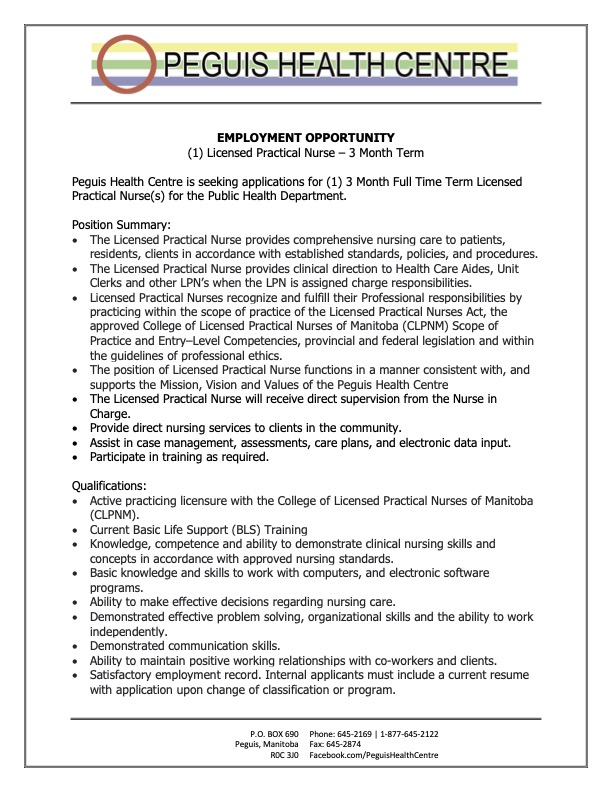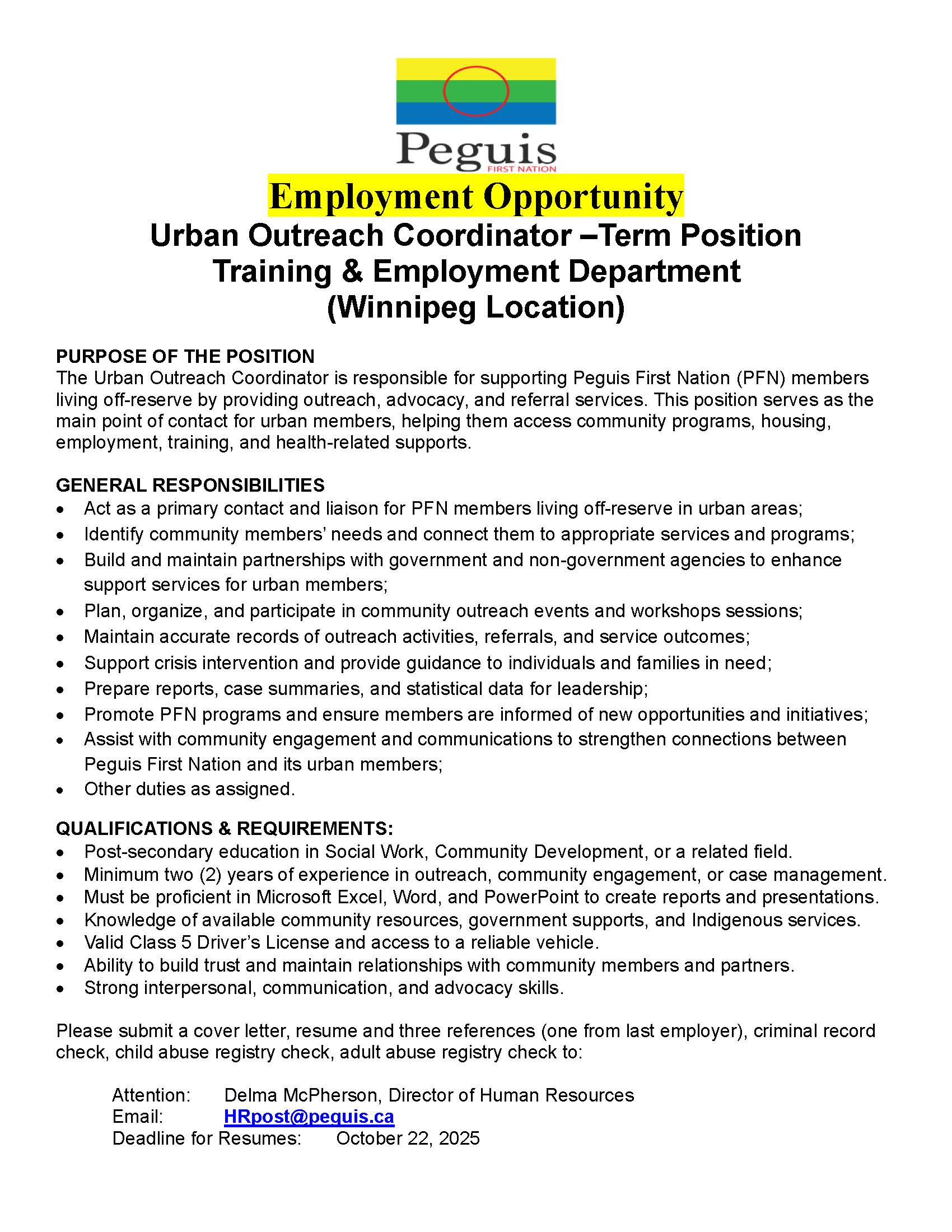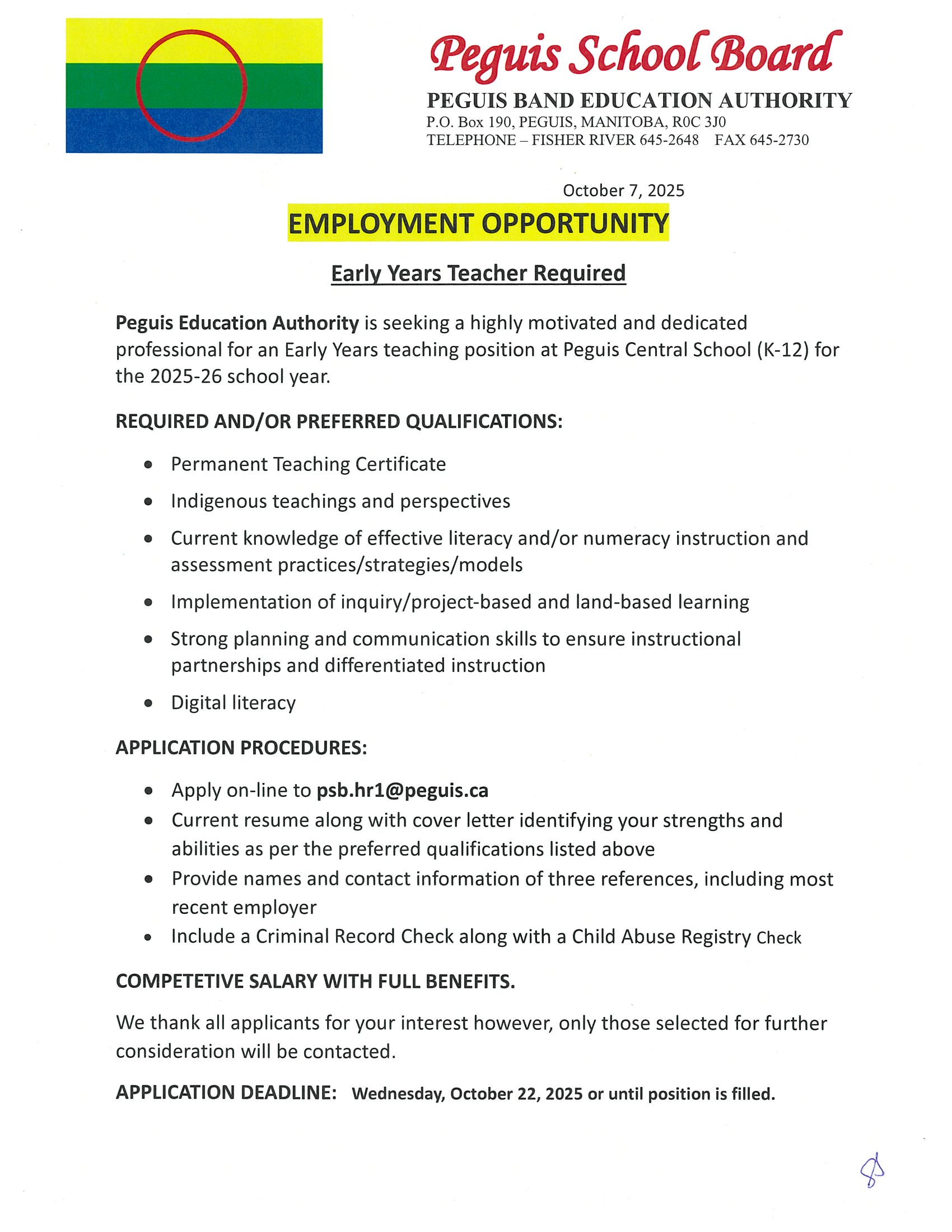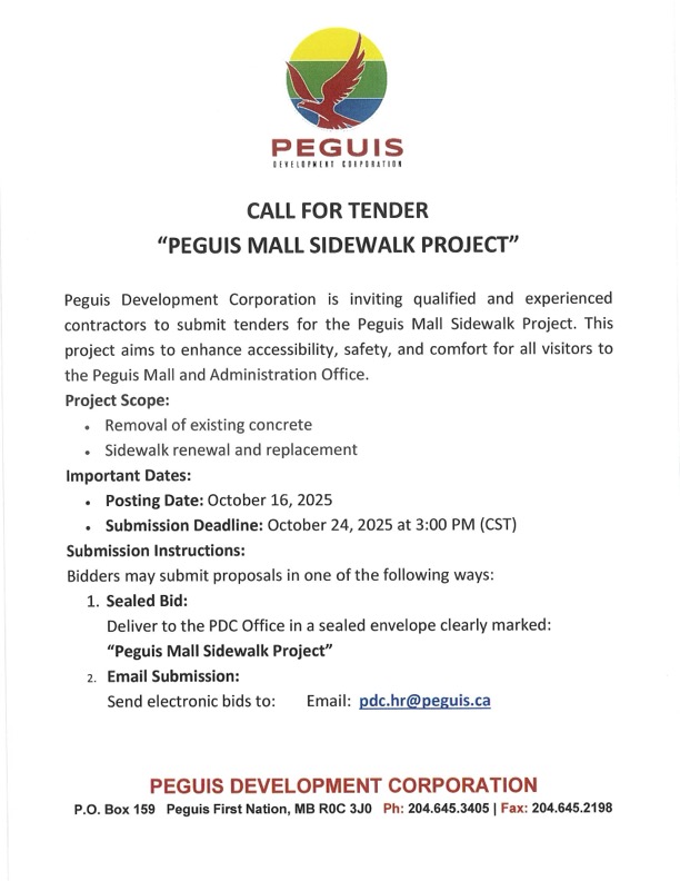 Seasonal Flu Vaccine Now Available in Peguis First Nation The FLU Vaccine has arrived and is now available at the Peguis Health Centre. πŸ•’ Hours: Monday to Friday, 9:30 AM – 4:30 PM πŸ“… Start Date: October 2, 2025 πŸ₯ Location: Peguis Health Centre 🧾 Bring: Your Manitoba Health Card πŸ‘• Wear: A short-sleeved shirt for easy access πŸ‘©β€βš•οΈ Service: You will be seen by the Nurse on Call Protect yourself and your loved ones this flu season. Get vaccinated!
