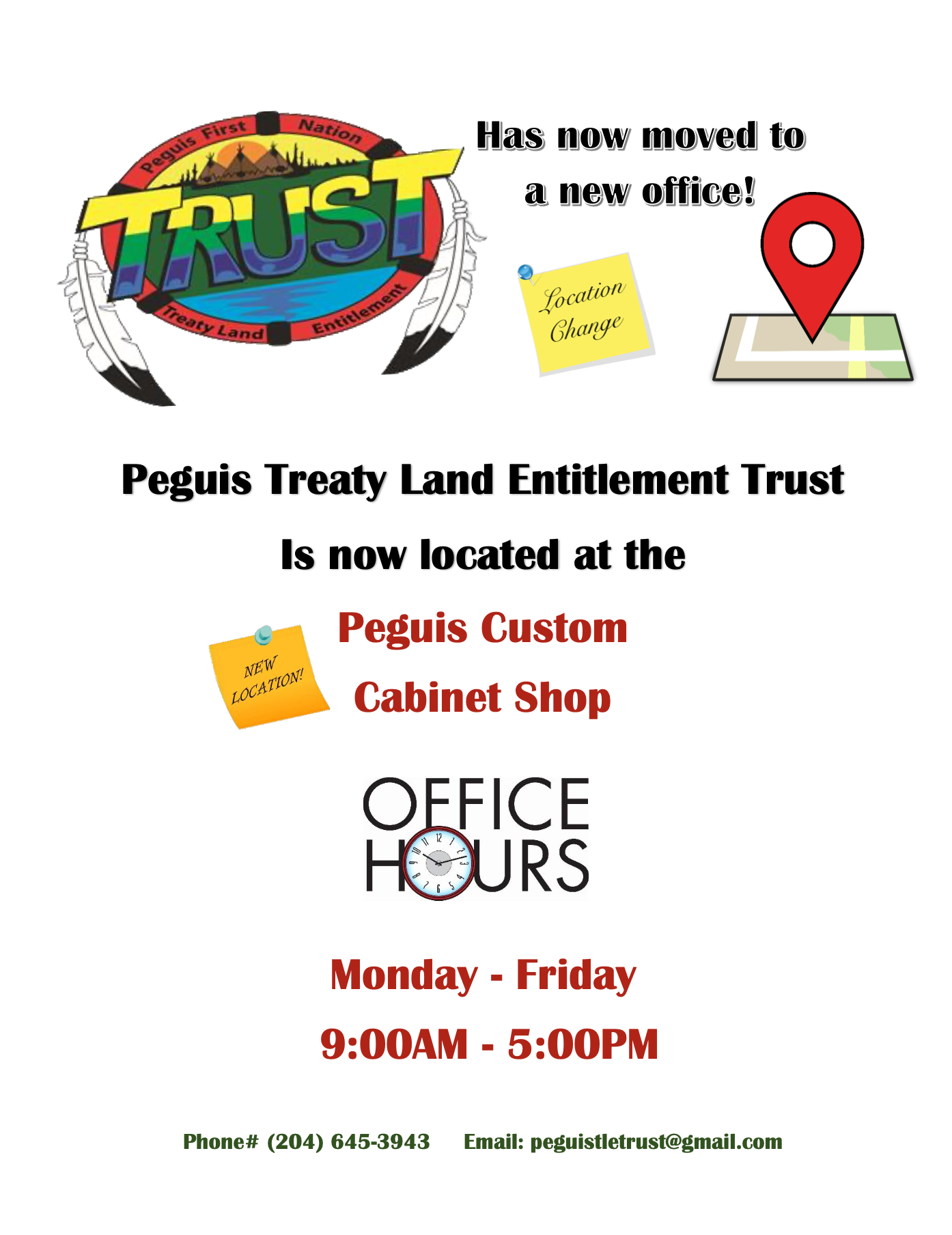 Peguis Treaty Land Entitlement Trust Is now located at the old Peguis Custom Cabinet Shop