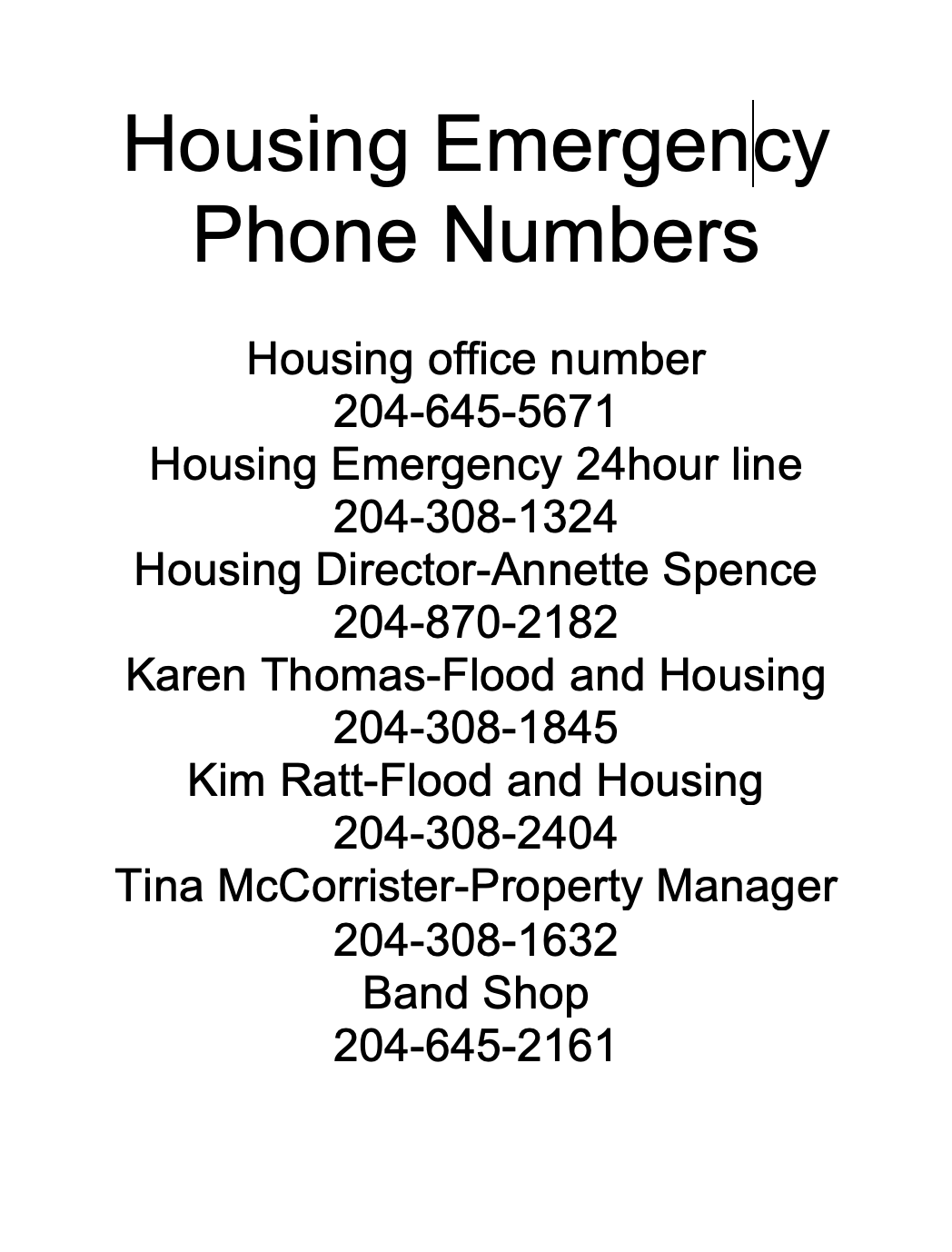Maintenance Line for repairs, septic services and emergencies: (204) 645-5640