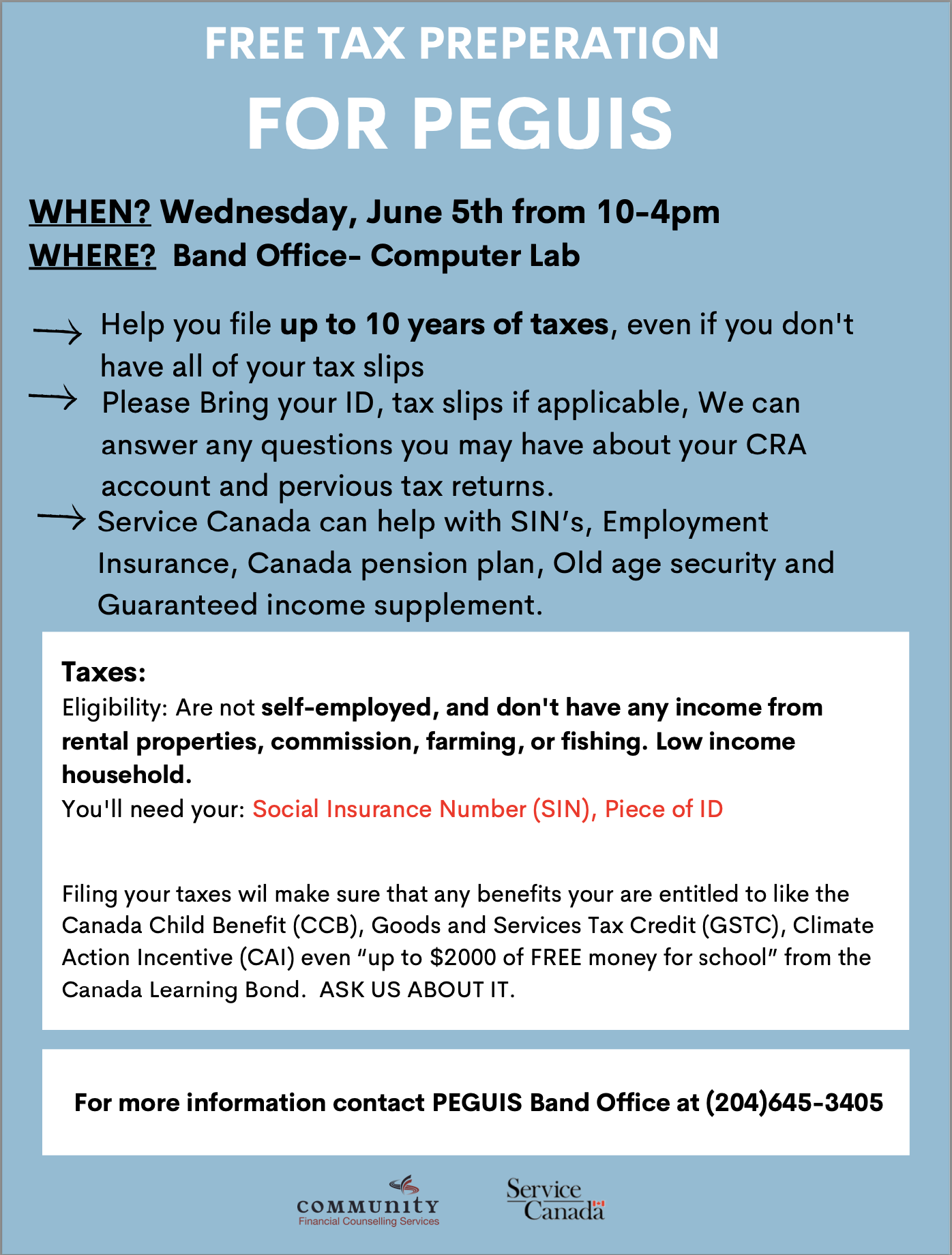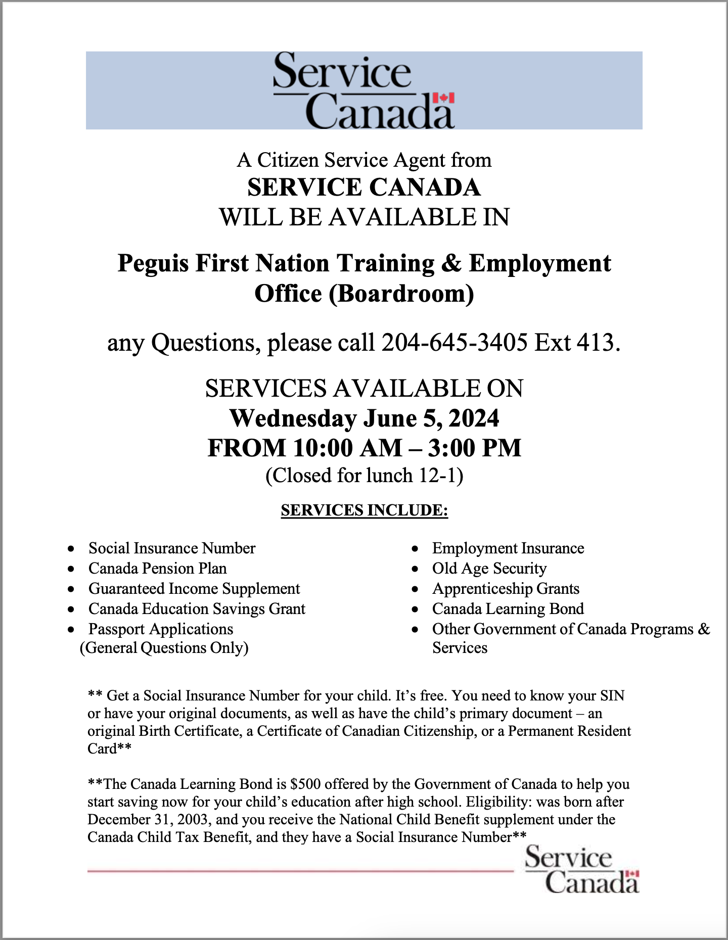 Service Canada - Services Available In Peguis on Wednesday June 5, 2024