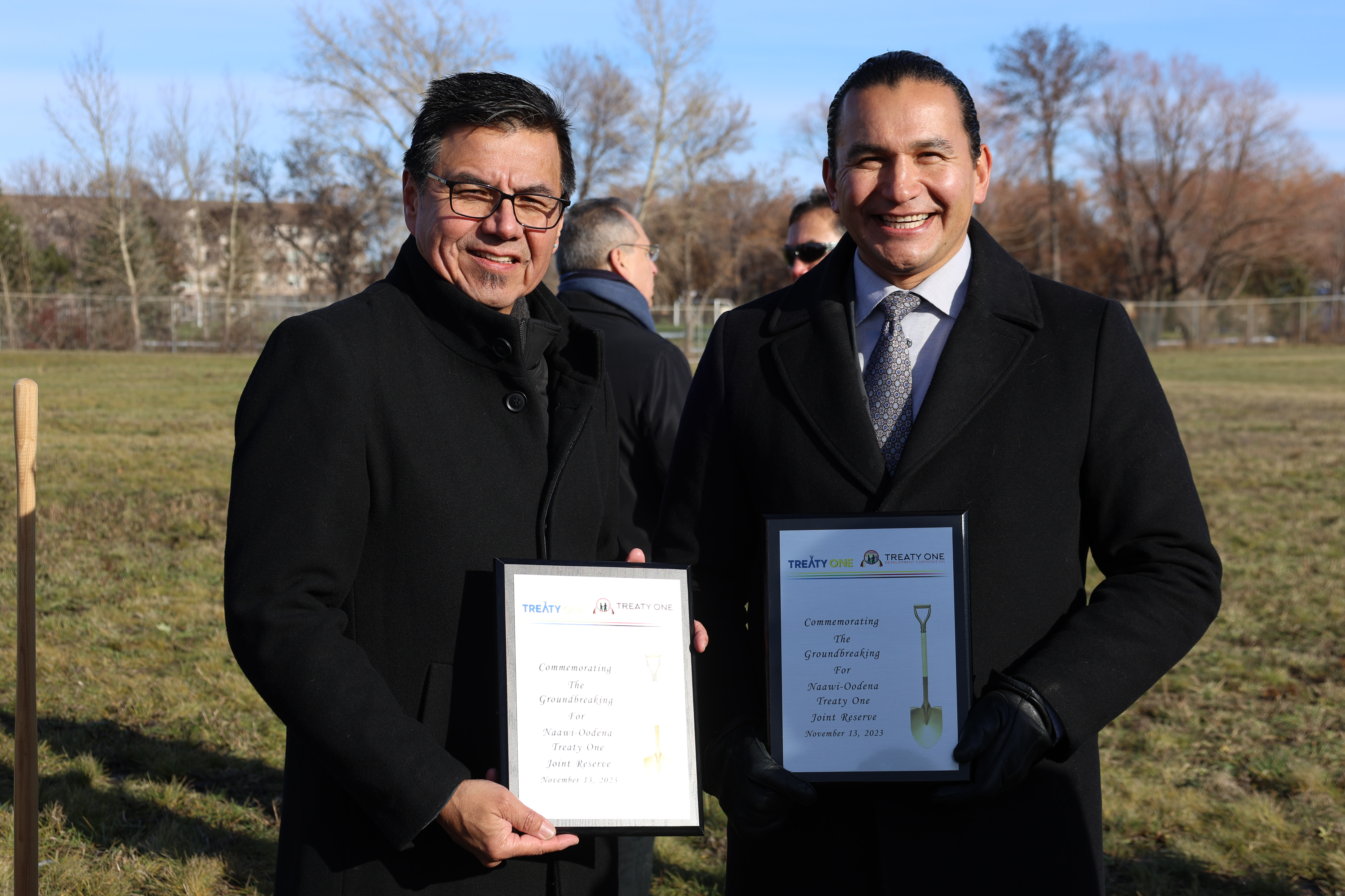 History was witnessed this morning as Treaty One broke ground for the first time on Block A of Naawi-Oodena, located on the NE corner of Kenaston Blvd. & Taylor Ave. This transformative Urban Economic Development Zone is the future home of a vibrant community which will bring the vision of Treaty One to life as an economic powerhouse within its rightful and traditional territory.