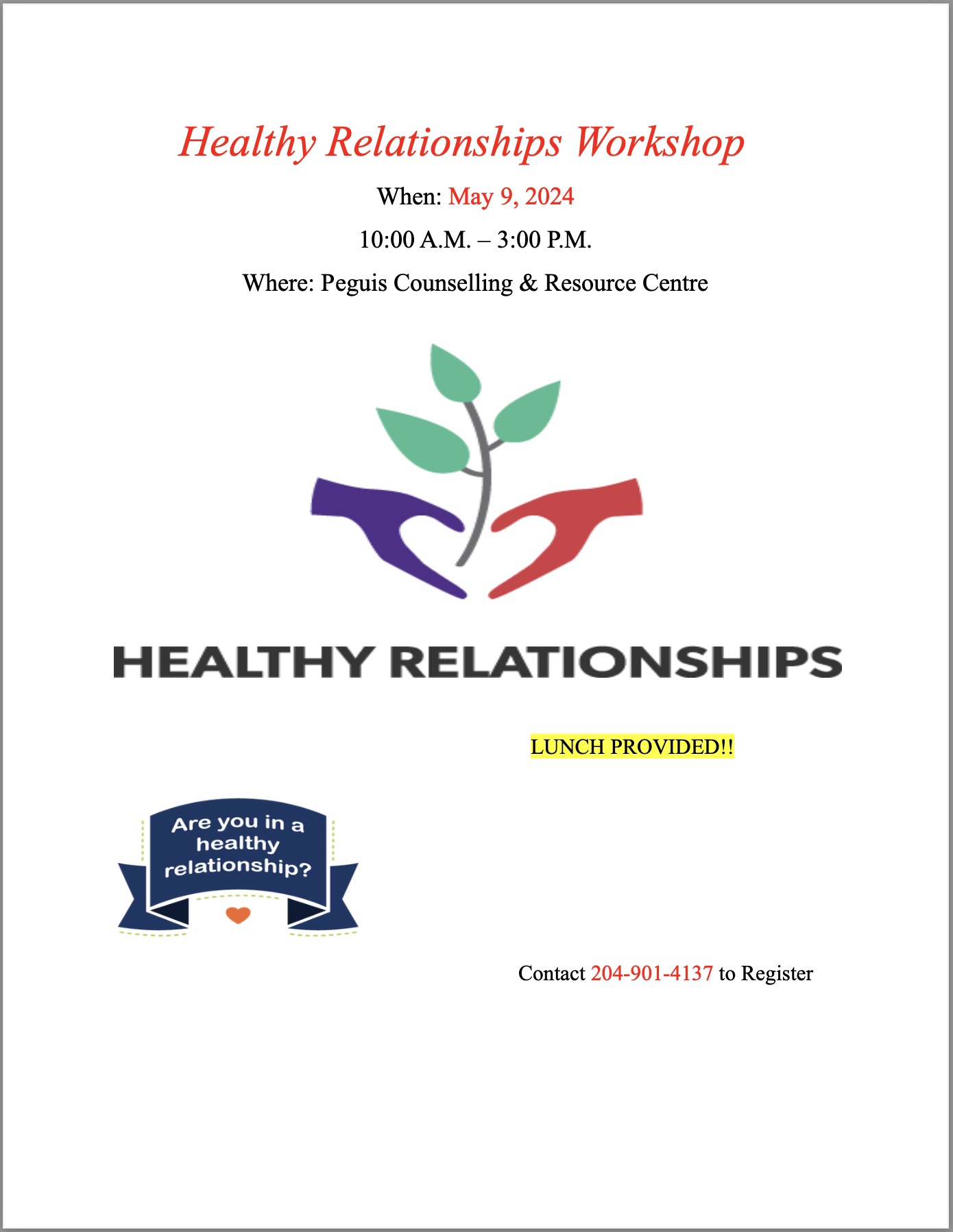 Healthy Relationships Workshop When: May 9, 2024