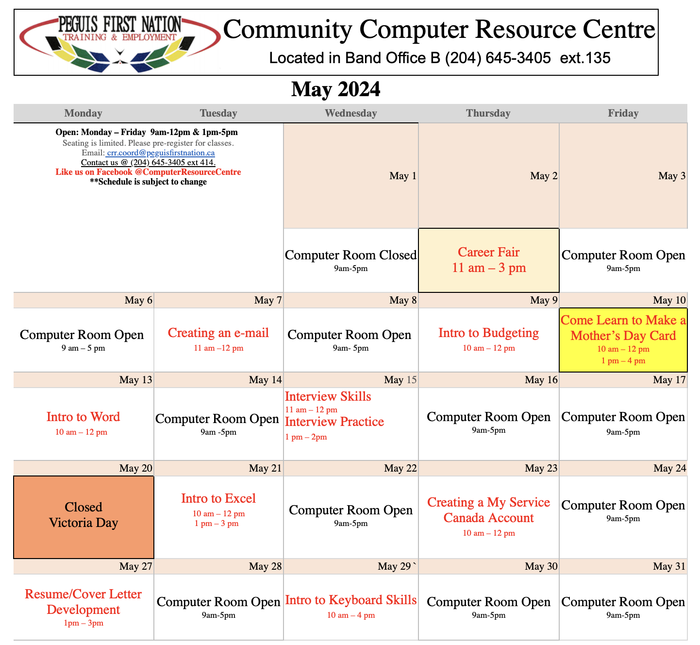 Community Computer Resource Centre - Calendar